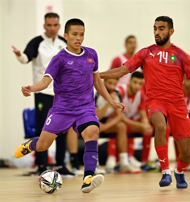 Bước vào trận, tuyển Futsal Morocco liên tục pressing và tạo ra nhiều tình huống nguy hiểm về phía khung thành thủ môn Văn Ý. Phút thứ 2, đội bạn đã có bàn thắng mở tỷ số từ tình huống đá biên. Chưa kịp chấn chỉnh lại thế trận, tuyển Futsal Việt Nam đã nhận thêm bàn thua nữa ở phút thứ 7. Bị ghi liên tiếp 2 bàn, các học trò HLV Phạm Minh Giang cố gắng không để đối phương vây ráp và áp đảo thế trận. Cũng phải nói thêm rằng các cầu thủ tuyển Futsal Morocco chơi rất mạnh mẽ, không ngại va chạm và sở hữu kỹ thuật cá nhân rất tốt. HLV Phạm Minh Giang liên tục thay đổi đội hình và đến phút 15, Văn Hiếu đã có pha dứt điểm tinh tế trước sự áp sát cực lớn của cầu thủ đội bạn.