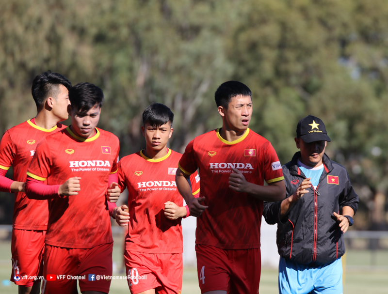 Các cầu thủ tập nhẹ trong ngày đầu tiên ở Melbourne. Ảnh: VFF