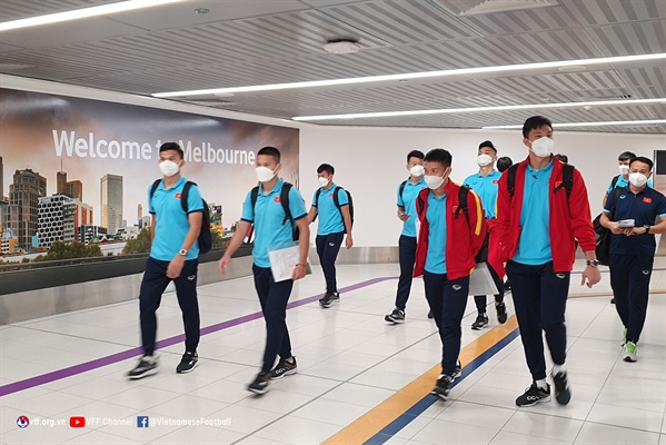 Theo thông tin từ Liên đoàn bóng đá Việt Nam (VFF), sau chuyến bay dài 8 tiếng với điểm xuất phát từ TP.HCM, vào lúc10h40 giờ địa phương (6h40 giờ Việt Nam) sáng nay, đội tuyển Việt Nam đã đặt chân tới Melbourne.