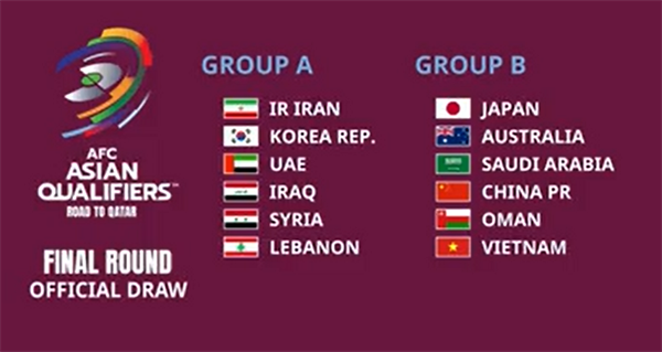 Kết quả bốc thăm đưa tuyển Việt Nam vào bảng B cùng Nhật Bản, Australia, Saudi Arabia, Trung Quốc và Oman. Bảng A gồm: Iran, Hàn Quốc, Iraq, UAE, Syria và Lebanon.