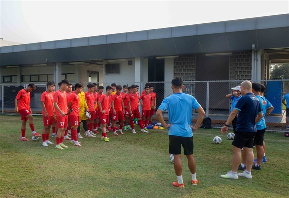 Ban huấn luyện U19 Việt Nam muốn các cầu thủ phải có sự tập trung cao độ trong trận đấu chiều nay. Ảnh: VFF