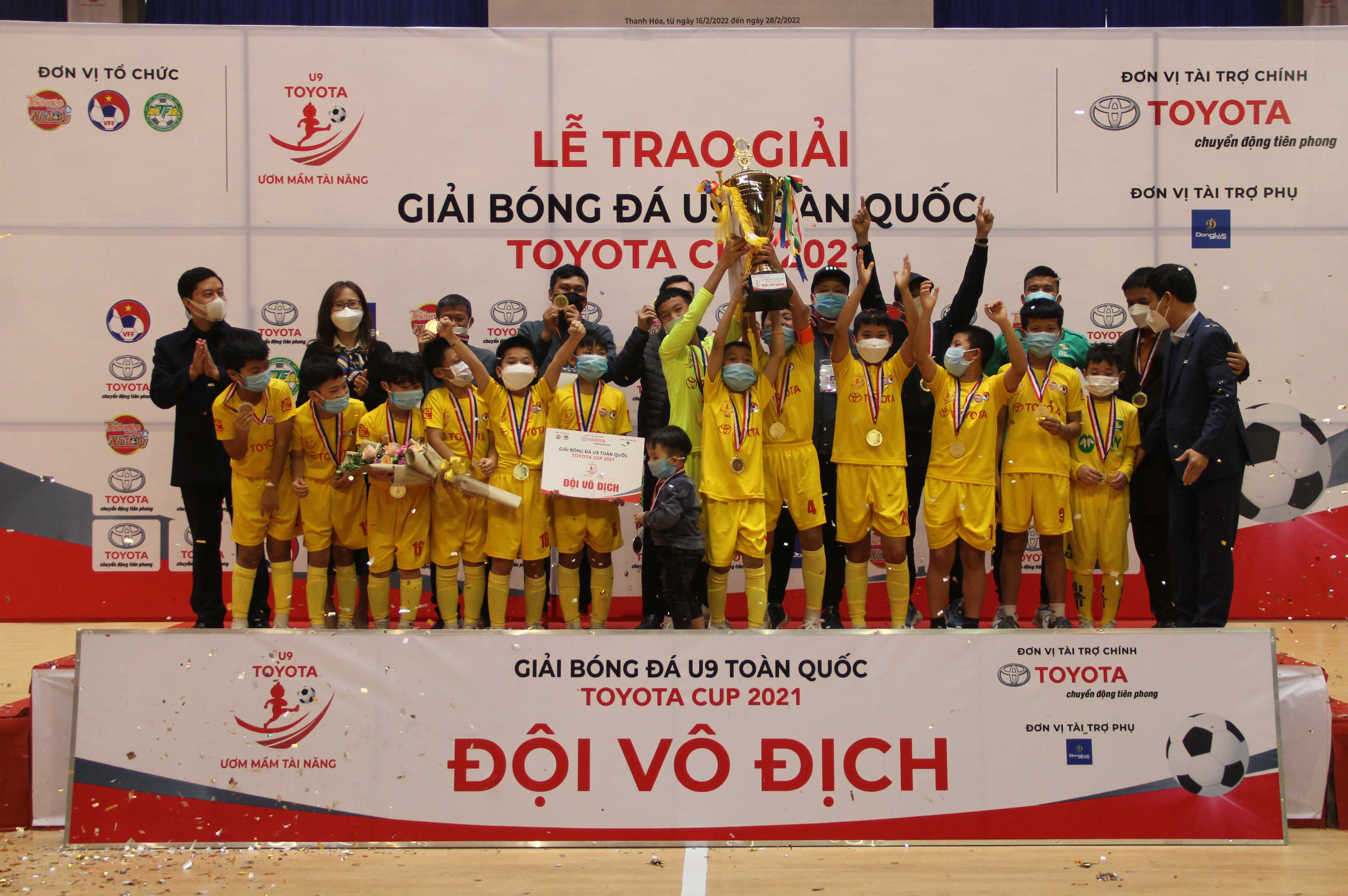 Vượt qua 12 đội bóng còn lại, hai đội Sông Lam Nghệ An và Bình Dương đã góp mặt trong trận chung kết tranh chức vô địch. Với ưu thế vượt trội, đội Sông Lam Nghệ An đã giành chiến thắng với tỷ số 3-1 trở thành nhà vô địch Giải bóng đá U9 toàn quốc Toyota Cup 2021. Đây là kết quả hoàn toàn xứng đáng dành cho đội bóng xứ Nghệ. Đội Bình Dương xếp hạng nhì. Các đội Ngọc Hùng TP.HCM và LĐBĐ Hà Nội xếp hạng ba. Đội U9 Việt Hùng Thanh Hóa nhận giải phong cách Toyota, đội U9 Phú Thọ giành giải phong cách do nhà tài trợ Động Lực trao.