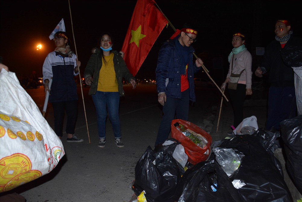 CĐV Việt Nam ở lại nhặt rác sau khi đội tuyển Việt Nam lên ngôi vô địch AFF Cup 2018 Ảnh: P.A