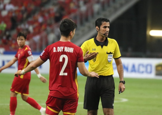 Trọng tài chính người Qatar đã có những quyết định gây bất lợi cho tuyển Việt Nam trong trận bán kết với Thái Lan. Ảnh: VFF