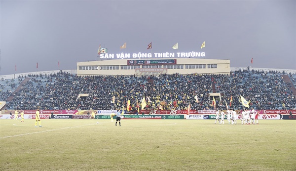 Hình ảnh ấn tượng trên khán đài sân Thiên Trường ở vòng đấu trước