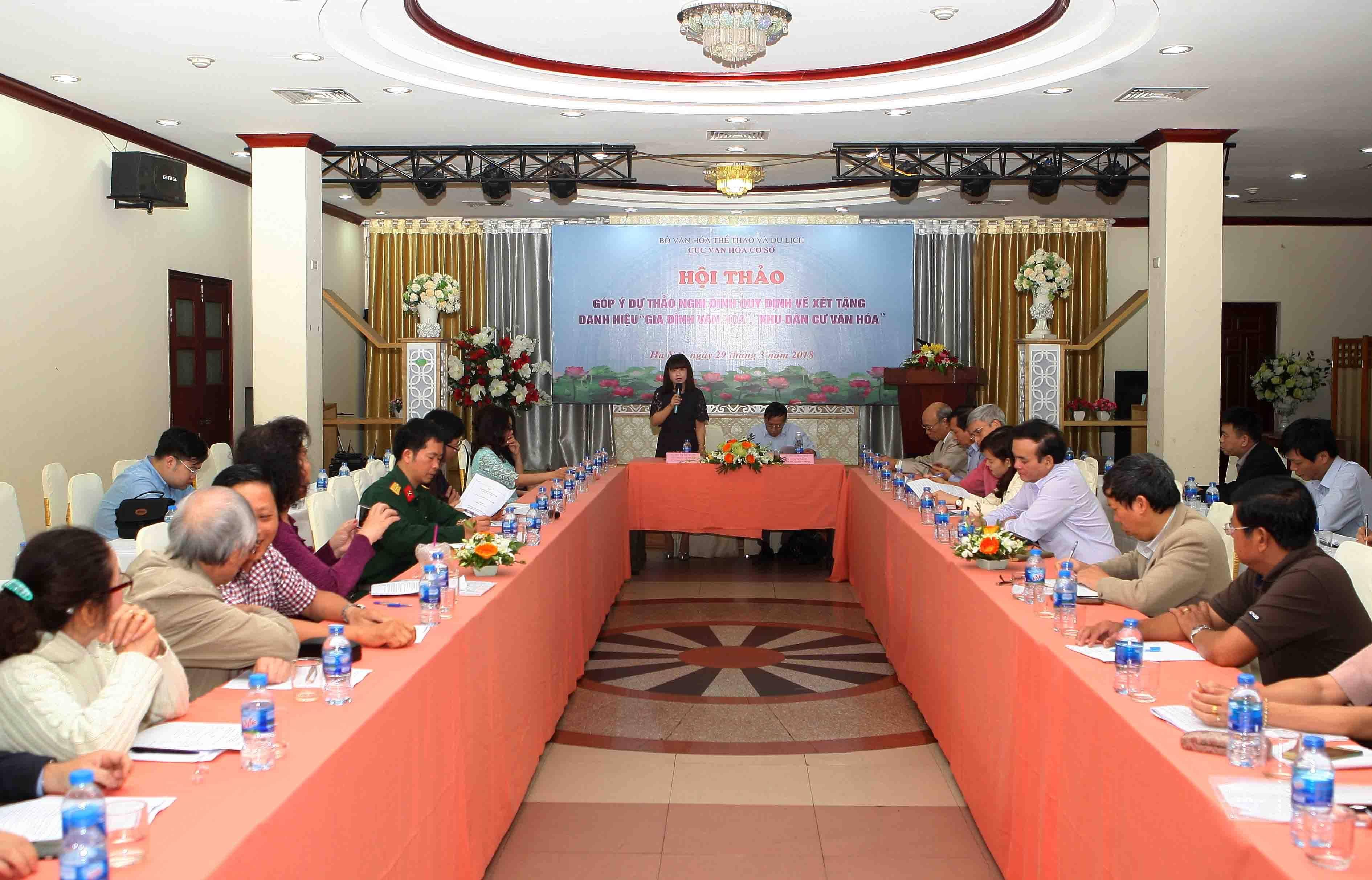 Ông Hà Văn Tăng, nguyên Cục trưởng Cục Văn hóa cơ sở lưu ý, nên đơn giản và tinh gọn lại những thủ tục để tránh rườm rà trong thực hiện các trình tự và thủ tục xét, công nhận danh hiệu. “Trước đây tôi đã từng nói, ước gì phong trào xét các danh hiệu văn hóa chỉ đạt tỉ lệ 10% thôi, nhưng là 10% thực chất. Các danh hiệu vốn đã tràn lan, giờ làm Nghị định thì cần sự đổi mới đột phá để tạo sức lan tỏa. Dù xét thế nào thì các tiêu chí vẫn phải tôn lên chất lượng danh hiệu... “, ông Hà Văn Tăng nhấn mạnh.