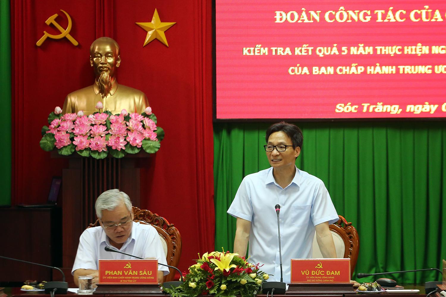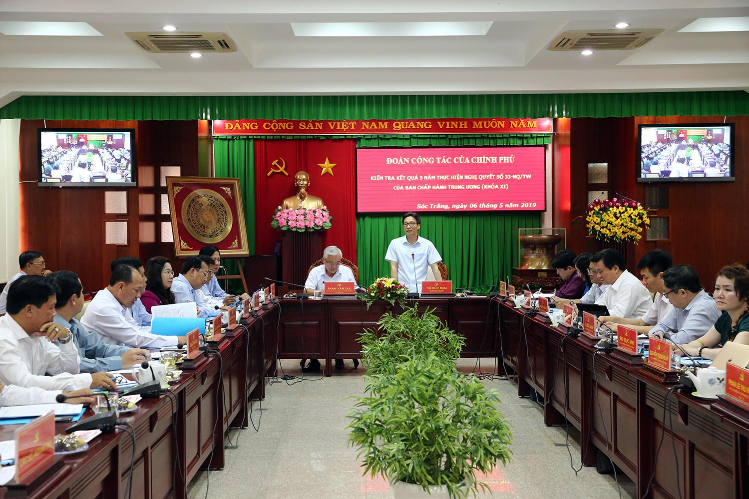 Qua ý kiến của lãnh đạo các bộ ngành và địa phương, Phó Thủ tướng Vũ Đức Đam đề nghị Sóc Trăng cần làm rõ những đặc thù của tỉnh trong quá trình thực hiện Nghị quyết 33, đồng thời phân tích sâu sắc bất cập, hạn chế của các chuẩn quốc gia về y tế, giáo dục, nông thôn mới trong các phong trào thi đua.