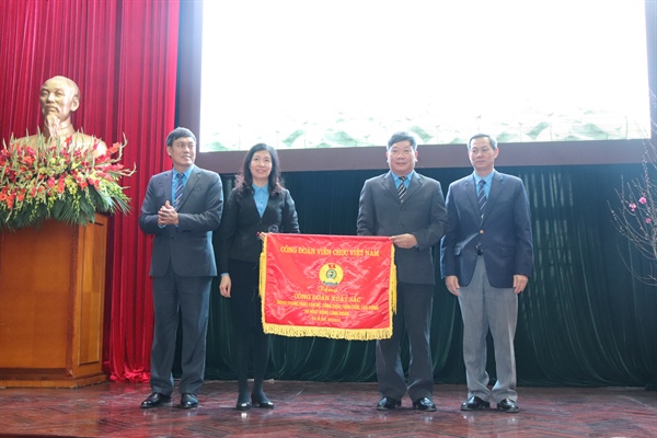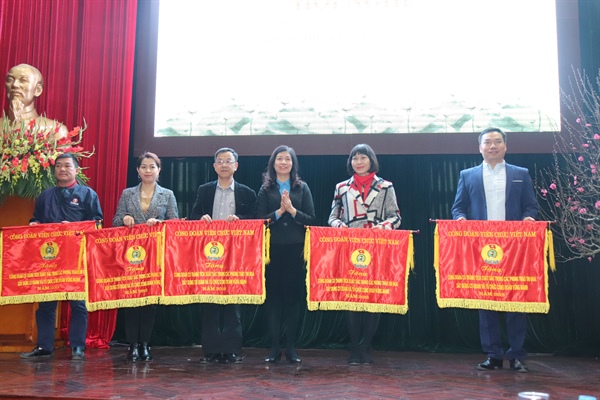 Phó Chủ tịch Công đoàn Viên chức VN Phan Phương Hạnh trao Cờ thi đua dẫn đầu của BCH Công đoàn Viên chức VN cho Công đoàn Bộ