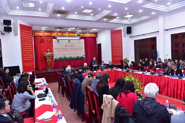 Tại Hội thảo, các đại biểu đã tập trung thảo luận và đề xuất những giải pháp cụ thể như đánh giá tác động của hệ thống văn bản quy phạm pháp luật đối với bảo vệ và phát huy giá trị văn hoá dân gian DTTS; đánh giá công tác bảo vệ và phát huy giá trị văn hoá dân gian DTTS hiện nay; đưa ra các giải pháp hoàn thiện chính sách, pháp luật về bảo vệ, phát huy giá trị văn hóa dân gian DTTS cũng như giải pháp tổ chức thực hiện.