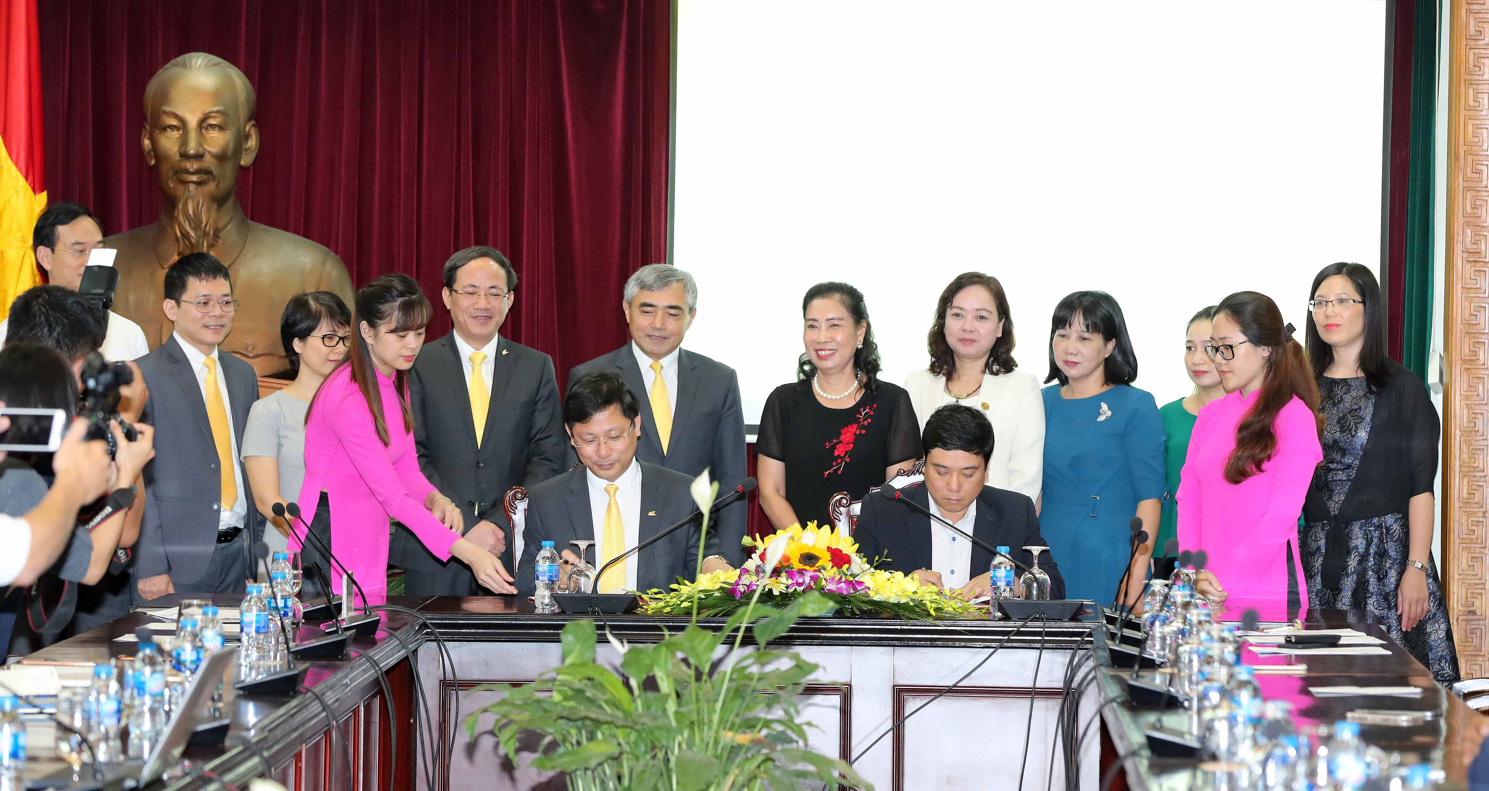 Ông Nguyễn Thái Bình, Chánh Văn phòng Bộ VHTTDL và ông Chu Quang Hào, Tổng Giám đốc Tổng công ty Bưu điện Việt Nam ký kết Bản thỏa thuận