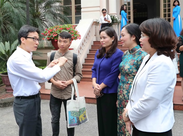 Phó Thủ tướng Vũ Đức Đam và Thứ trưởng Trịnh Thị Thủy trao đổi với các đại biểu