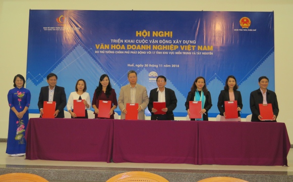 Cũng trong khuôn khổ hội nghị, đại diện của 17 tỉnh, thành khu vực Miền Trung-Tây Nguyên cũng ký kết kế hoạch phối hợp triển khai Cuộc vận động Xây dựng Văn hóa doanh nghiệp Việt Nam; đồng thời cam kết đồng lòng, quyết tâm thực hiện tốt cuộc vận động này.