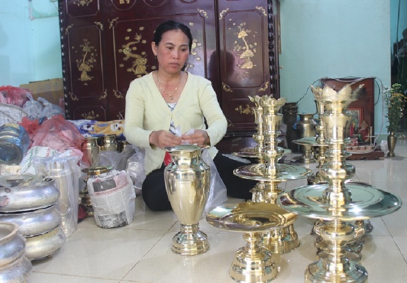 Ông Biền Ngọc Triều (55 tuổi), đời thứ 5 của dòng họ Biền chuyên đúc đồng kể: “Ông nội tôi năm nay đã 95 tuổi, là người chỉ dạy cho chúng tôi gắn bó với nghề đúc đồng này, không biết nghề đúc đồng nơi đây có từ bao giờ, chỉ biết trước ông nội tôi đã có nhiều thế hệ gắn bó với nghề này”. Cũng theo anh Triều, các sản phẩm đồng ở làng Phú Lộc khá đa dạng: Từ khay đồng, mâm đồng, chum đồng cho đến các loại dàn đèn đồng. Những năm qua các sản phẩm đúc đồng tiêu thụ nhiều nên không khí làm việc tại làng đúc đồng rất gấp gáp, hối hả. Người từ các địa phương kéo nhau đến đặt mua các loại lư hương, dàn đèn đồng về trưng lên bàn thờ. Những sản phẩm có giá khác nhau tùy thuộc vào kích thước, hoa văn. Loại ít tiền cũng cỡ 1 triệu đồng/bộ, loại lớn hơn thì khoảng 10 triệu đồng/bộ, trừ đi chi phí năm nào gia đình anh Triều cũng thu về trên 100 triệu đồng.
