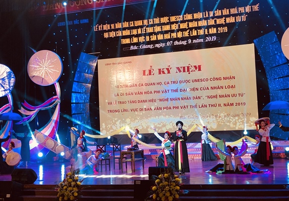 Năm 2009, dân ca quan họ được UNESCO công nhận di sản văn hóa phi vật thể đại diện của nhân loại, ca trù là di sản văn hóa phi vật thể cần bảo vệ khẩn cấp. 10 năm qua, hai loại hình dân ca này đã được tỉnh Bắc Giang nỗ lực bảo tồn, phát huy giá trị, góp phần tạo sức lan tỏa trong xã hội; ý thức cộng đồng về di sản ngày càng sâu sắc.