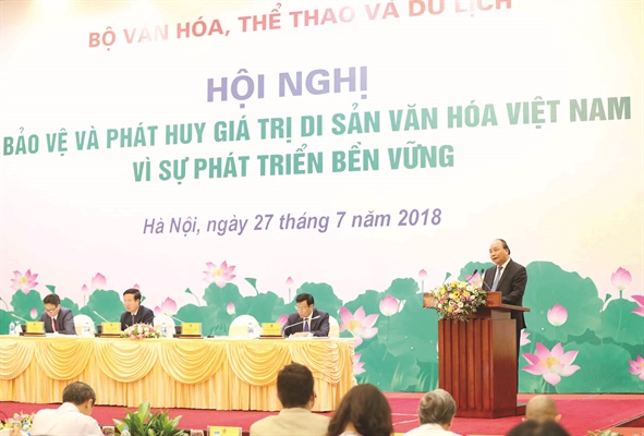 Ngày 27.7.2018, tại Hà Nội, đã diễn ra Hội nghị Bảo vệ và phát huy giá trị di sản văn hóa Việt Nam vì sự phát triển bền vững. Ủy viên Bộ Chính trị, Thủ tướng Chính phủ Nguyễn Xuân Phúc đã tham dự, chủ trì và phát biểu tại Hội nghị. Hội nghị đánh giá tình hình di sản thế giới tại Việt Nam và công tác bảo vệ, phát huy giá trị di sản văn hóa ở Việt Nam vì sự phát triển bền vững.