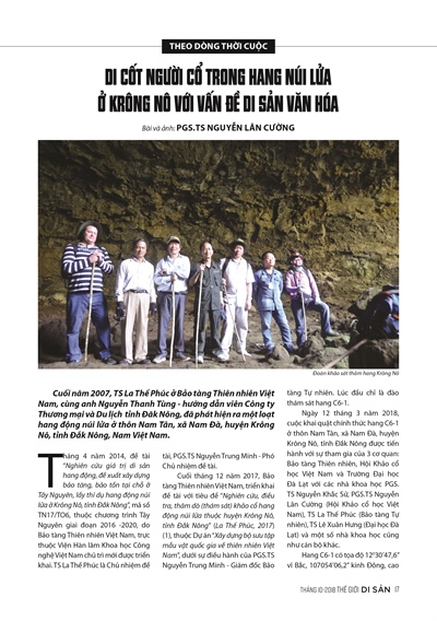 Các nhà địa chất và khảo cổ học Việt Nam đã phát hiện về di tích cư trú của người tiền sử trong hang động núi lửa ở Công viên Địa chất núi lửa Krông Nô, Đắk Nông. Đây là lần đầu tiên ở Việt Nam, hang động núi lửa đã được các nhà khoa học tiếp cận nghiên cứu toàn diện bằng nhiều phương pháp, xác lập đầy đủ các giá trị di sản tự nhiên (địa chất, đa dạng sinh học) và văn hóa (khảo cổ học) cho loại hình di sản hang động núi lửa.