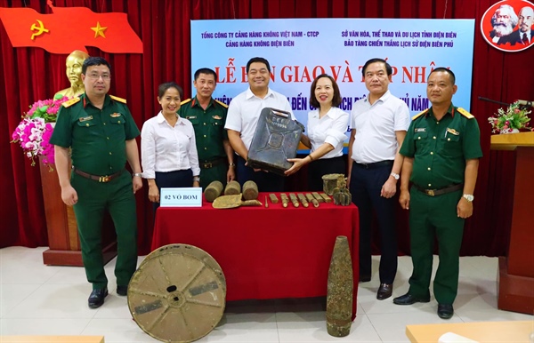 24 hiện vật được bàn giao cho Bảo tàng Chiến thắng lịch sử Điện Biên Phủ tổng gồm các loại vỏ bom, vỏ đầu đạn pháo 105mm, 155mm, guồng quay thông tin, can xăng, băng đạn...tất cả các hiện vật trên đã được vô hiệu hoá tính năng sử dụng, đảm bảo yếu tố an toàn trong quá trình lưu giữ và bảo quản. Đây là những hiện vật chiến tranh được tìm thấy trong quá trình rà phá bom mìn thực hiện Dự án đầu tư, nâng cấp Cảng hàng không Điện Biên do Tổng công ty Cảng hàng không Việt Nam - CTCP (ACV) là chủ đầu tư.