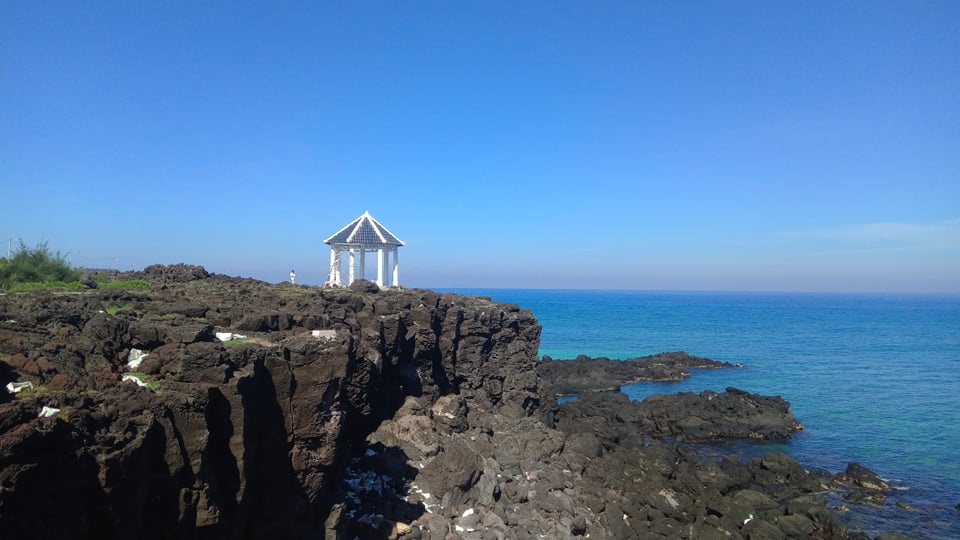 Nhà vòm là điểm dừng chân trên cánh đồng Dung Nham ở đảo Bé được xây dựng băng bê tông trên bãi đá nham thạch triệu năm