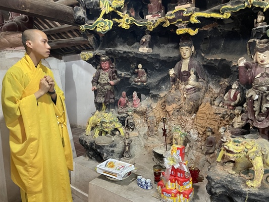 Trụ trì nhà chùa, sư thầy Thích Thánh Nghĩa trăn trở trước thực trạng xuống cấp của nhiều hạng mục trong chùa