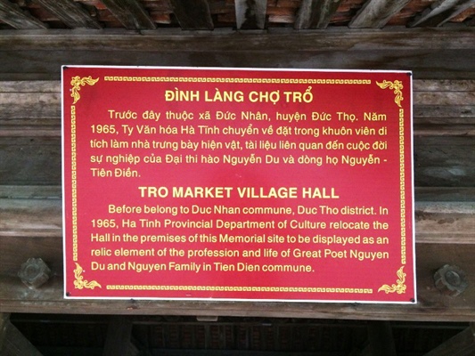 Bảng giới thiệu về đình Chợ Trổ tại Khu di tích Nguyễn Du Ảnh: TƯ LIỆU