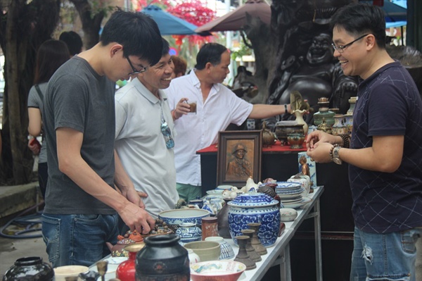 Khá thích thú bên gian hàng đồ cổ, anh Nguyễn Thanh Tùng, một du khách đến từ Cần Thơ cho biết: “Những gian hàng ở đây khá lạ, điều này tạo cho chúng tôi tính tò mò. Là một người yêu mến đồ cổ tôi đã chọn mua được chiếc đồng hồ cổ, bổ sung vào bộ sưu tập đồng hồ cổ của mình. Nhiều du khách tới đây cũng tạo nên không gian vui vẻ, nhiều người được giao lưu, học hỏi về một nền văn hóa cổ xưa”.