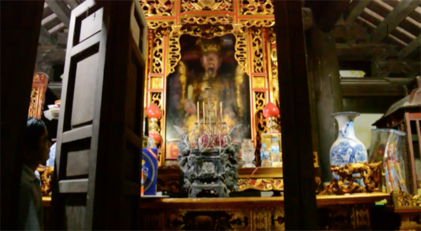 Tượng Thống quốc thái sư Trần Thủ Độ có niên đại hơn 500 năm và bát hương đá cổ tại đình Khuốc