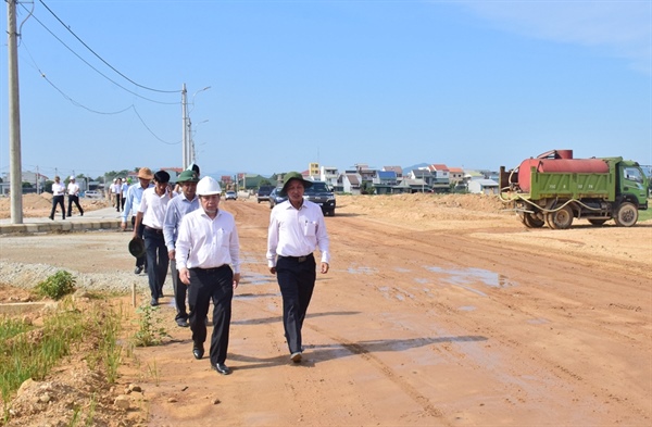 Ông Phan Ngọc Thọ và đại diện các Sở, ngành liên quan kiểm tra công tác thi công hạ tầng khu tái định cư