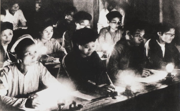 Lớp học bình dân học vụ được mở ra ở nhiều địa phương, thu hút đông đảo nhân dân tham gia học tập. Ảnh: Tư liệu