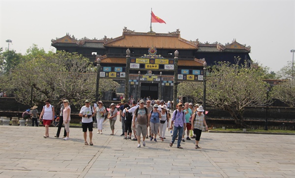Du khách quốc tế tham quan khu di sản Hoàng Cung Huế