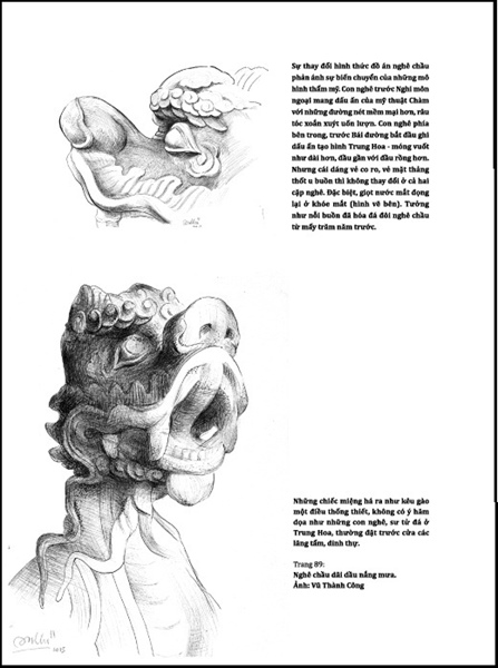 “Sách chỉ có đôi lời bàn luận, dẫn giải, còn phần lớn cung cấp những tư liệu hình ảnh, bản đạc họa, sơ đồ... Sách dày 332 trang với trên 500 hình ảnh và tư liệu minh họa phong phú, trình bày đẹp mắt, các biện luận chú giải ngắn gọn, dễ hiểu. Sách đã công phu sưu tầm hình tượng nghê từ thời Lý đến thời Nguyễn, từ Bắc chí Nam, đồng thời so sánh với một số linh vật của nhiều nước trong khu vực…”, nhà phê bình mỹ thuật Nguyễn Đức Bình nhận xét.