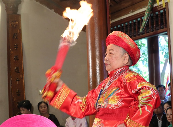 Thanh đồng Đặng Thị Nhiễu 84 tuổi - đồng đền của đền Rừng, phường Ngọc Thụy, quận Long Biên, Thanh đồng Trần Kim Huệ - Thủ nhang Phủ Chính - Tiên Hương – Phủ Dầy tỉnh Nam Định, Thanh đồng Vũ Thanh Bình – Hội trưởng chi hội Di sản văn hóa Hải Hậu – Nam Định thực hành nghi lễ hầu đồng