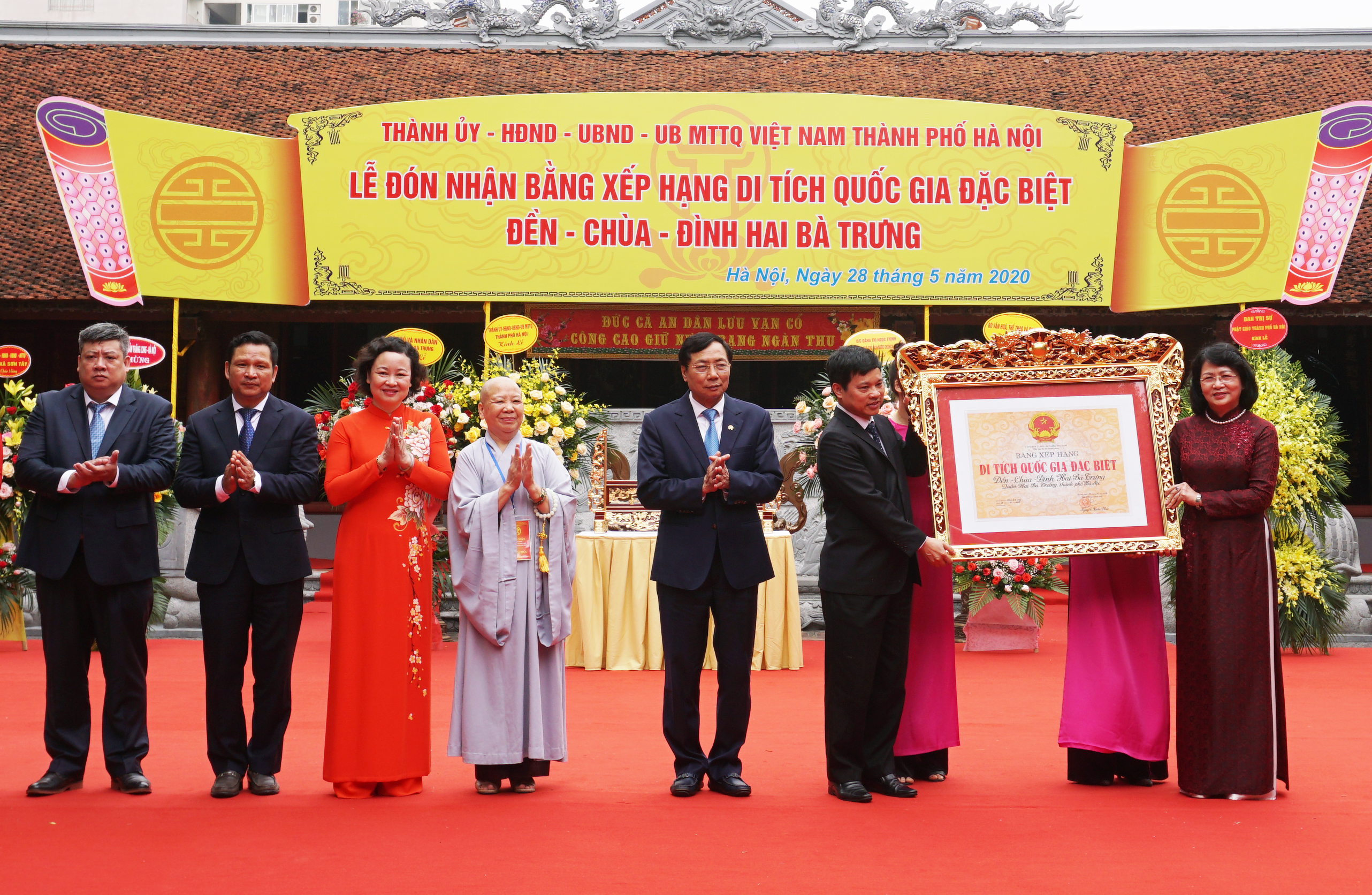Phó Chủ tịch nước Đặng Thị Ngọc Thịnh trao Bằng xếp hạng Di tích quốc gia đặc biệt cho lãnh đạo TP. Hà Nội và quận Hai Bà Trưng