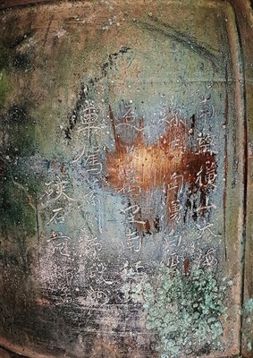 Bài thơ của tác giả Phạm Sư Mạnh còn lưu giữ trên chuông nhưng nhiều nét chữ đã bị mờ, có khu vực bị ô xi hóa khiến chữ bị mất.