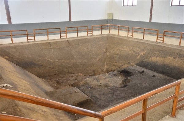 Hố khai quật phục dựng chỉ là nền đất, không mô tả, không thuyết minh
