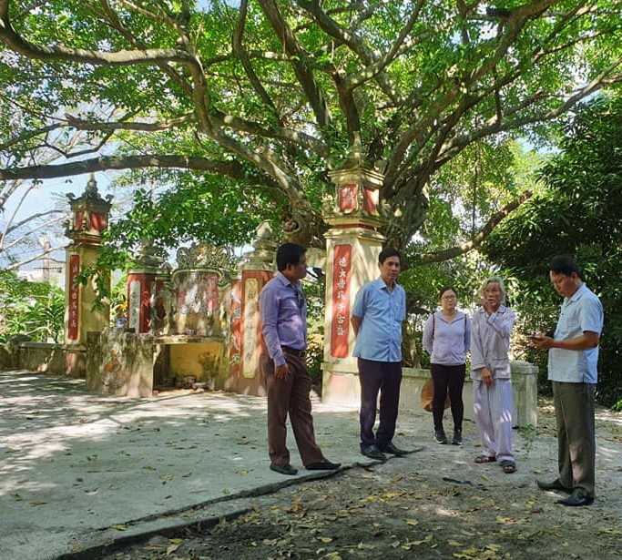 Lãnh đạo Sở VHTT thành phố Đà Nẵng lắng nghe ý kiến của các bô lão trong làng tại chuyến khảo sát hệ thống di tích ở Trung Sơn. Ảnh: NGỌC HÀ