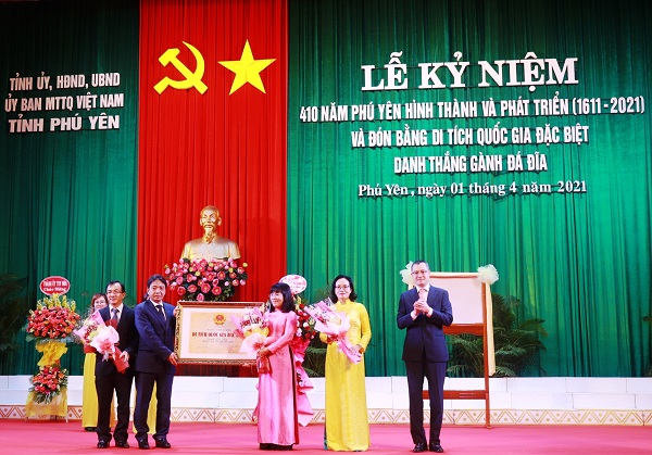 Tại Lễ kỷ niệm, lãnh đạo tỉnh Phú Yên đã thay mặt Đảng bộ, chính quyền và nhân dân trong tỉnh vinh dự đón nhận Bằng xếp hạng Di tích quốc gia đặc biệt Danh thắng Gành Đá Đĩa.