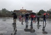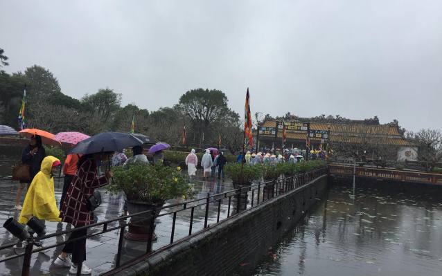 Mặc dù mưa rét nhưng lượng khách tham quan di sản Huế trong ngày đầu năm 2019 rất đông. Ảnh: T.An