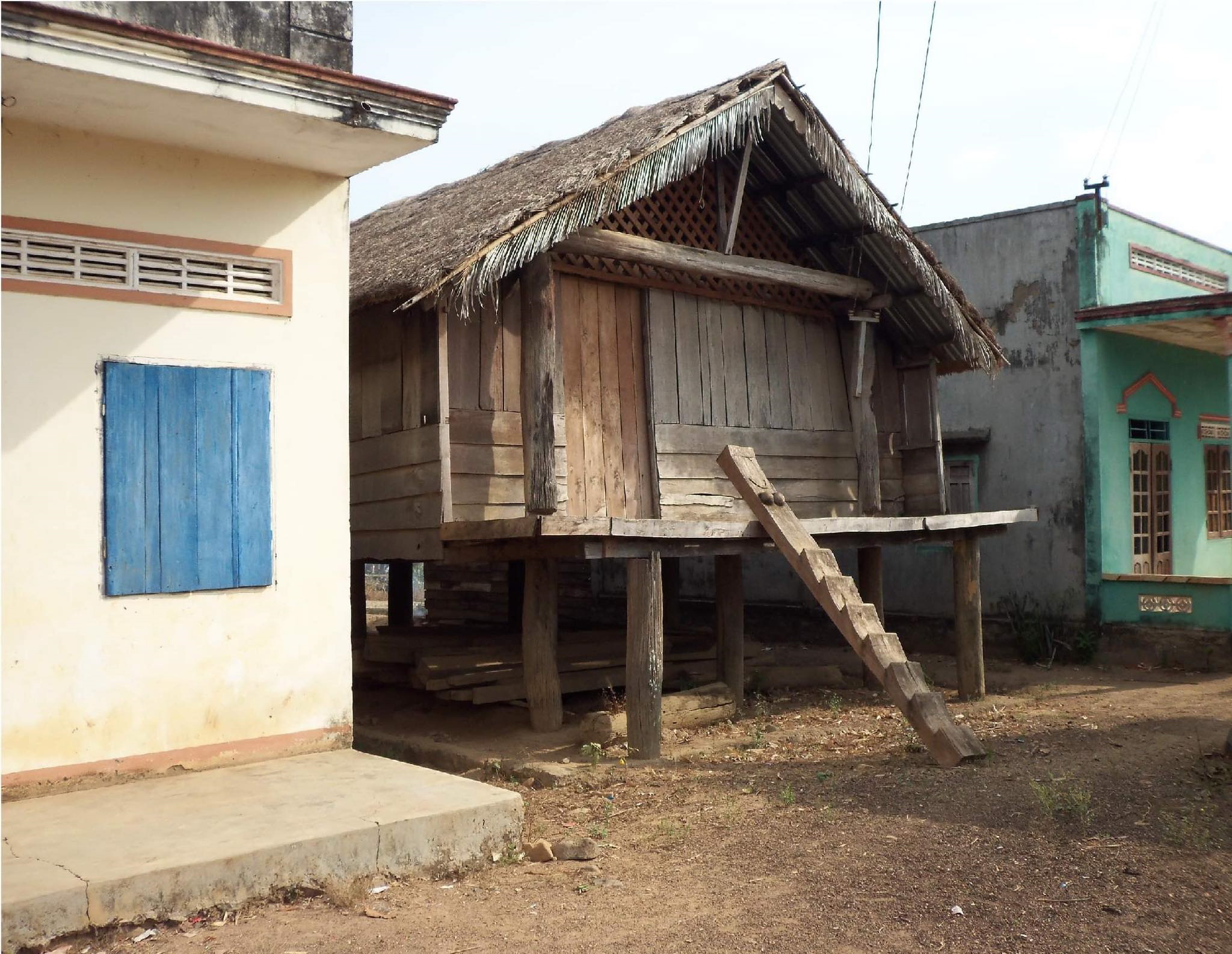 Những ngôi nhà dài đặc trưng của người Ê Đê ở buôn Buôr đứng chơ vơ bên các công trình nhà xây kiên cố
