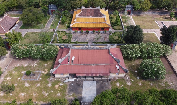 Công trình Thái Tổ Miếu hiện tại (ở phía trước) đã xuống cấp nghiêm trọng, có thể đổ sập bất cứ lúc nào