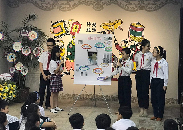 Học sinh tham gia trải nghiệm giáo dục di sản tại Văn Miếu - Quốc Tử Giám Hà Nội