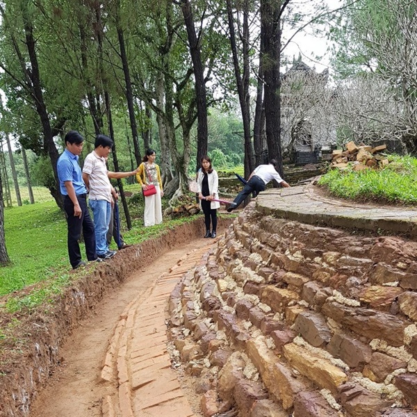 Hệ thống bậc cấp xuất lộ trong đợt khảo cổ cụm di tích lăng Đồng Khánh