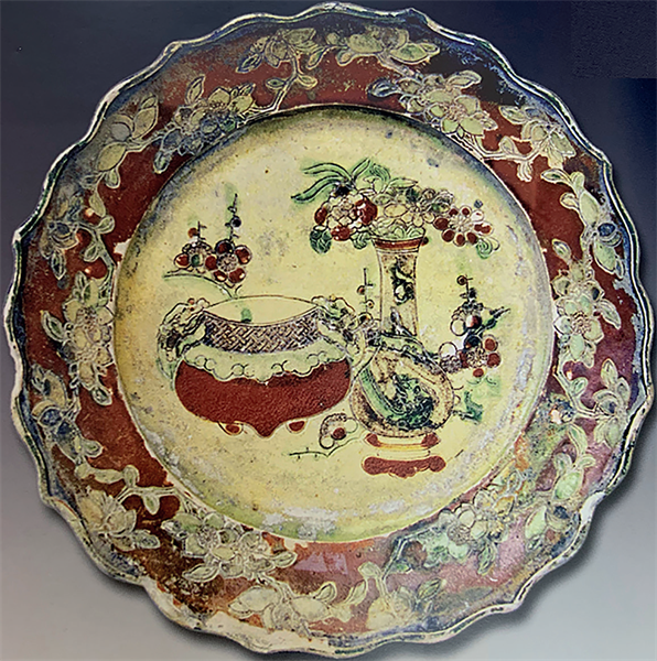 2. Thế rồi, gần đây khi tiếp xúc với những hiện vật trong sưu tập của một cựu nhà báo ở Đài Tiếng nói Việt Nam, tôi cũng nhận ra, trong vô số cổ vật của ông, có 5 hiện vật rất xinh xắn và tinh xảo, mang phong cách và kỹ thuật nung gốm lò quan và thợ thủ công ngự xưởng triều Thanh (Trung Hoa). Đó là chiếc bát men nhiều màu, mỏng như giấy, vẽ rồng 5 móng, hoa lá, dưới đáy có dấu triện vuông “Càn Long niên chế”, cùng một chiếc lọ củ tỏi men máu bò, đỏ như tiết, dưới đáy có hai vành xanh, gợi ý niên đại triều Thanh của nó. Dấu ấn hoàng gia của hai cổ vật này còn chỉ thị bằng màu men vàng, được phủ lên khí vật bằng kỹ thuật nung nhẹ lửa, theo đó, thời gian và quá trình sử dụng đã làm “lạc tinh” màu vàng ấy, khiến cho cổ vật càng có độ xác tín hơn.