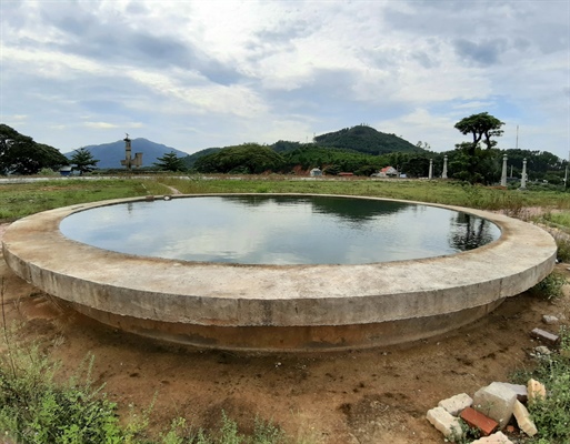 Hạng mục ao nước đã được xây dựng xong trên khu vực bảo vệ di tích