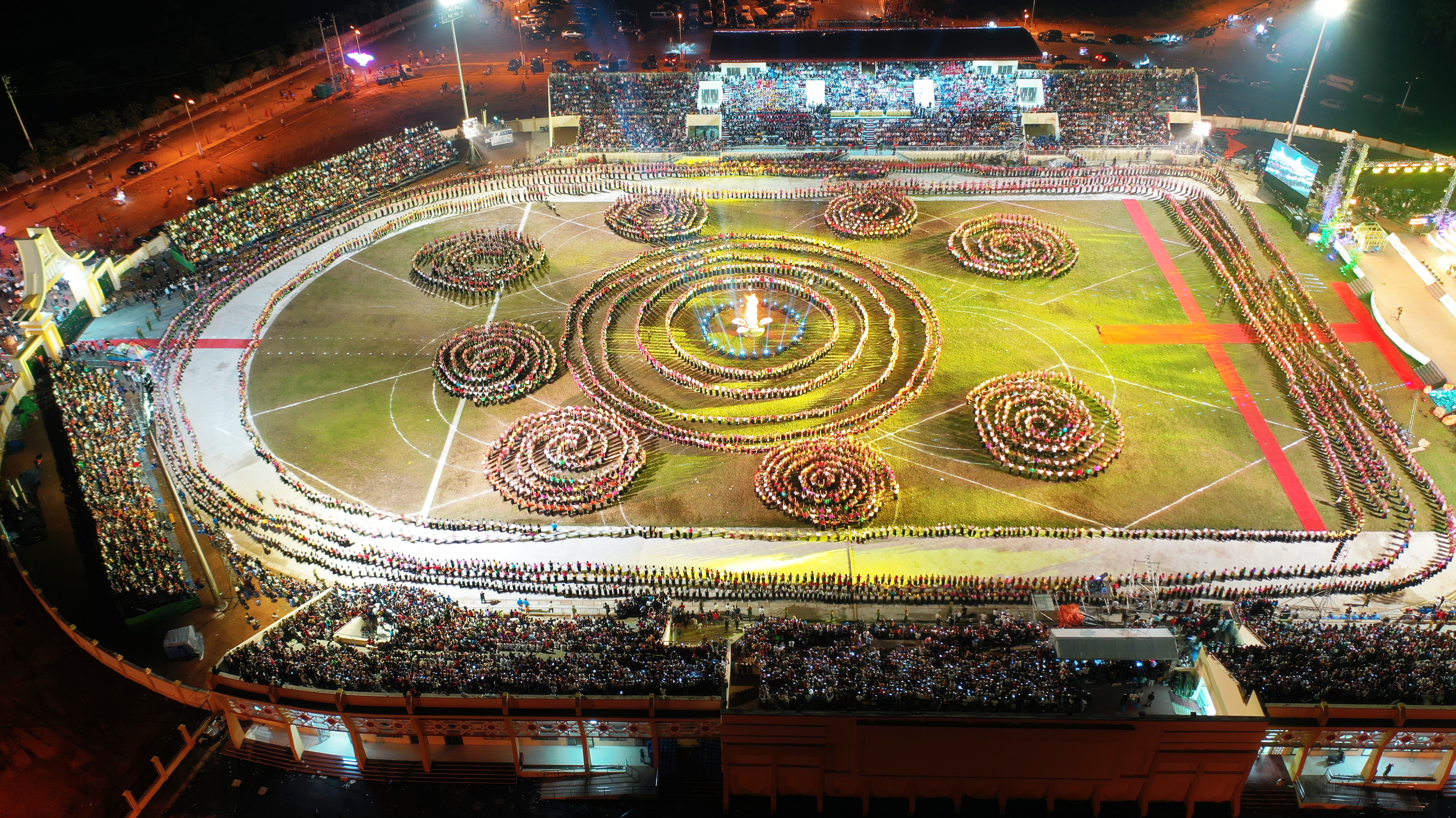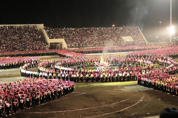 Vòng múa xòe được chia làm các đội hình "Hội tụ tinh hoa” mang ý nghĩa Mường Lò, nơi hội tụ tinh hoa văn hóa các dân tộc, "Vòng thời gian” - thể hiện sức sống mãnh liệt vượt thời gian, được lưu truyền qua ngàn đời của nghệ thuật xòe Thái, "Hoa văn Tây Bắc” như tiếng gọi của núi rừng, là bản hòa ca của thiên nhiên, con người và cuộc sống mộc mạc, giản dị của đồng bào dân tộc Thái...