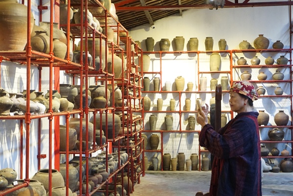GS.TS Thái Kim Lan ở một khu vực trưng bày gốm cổ sông Hương của mình