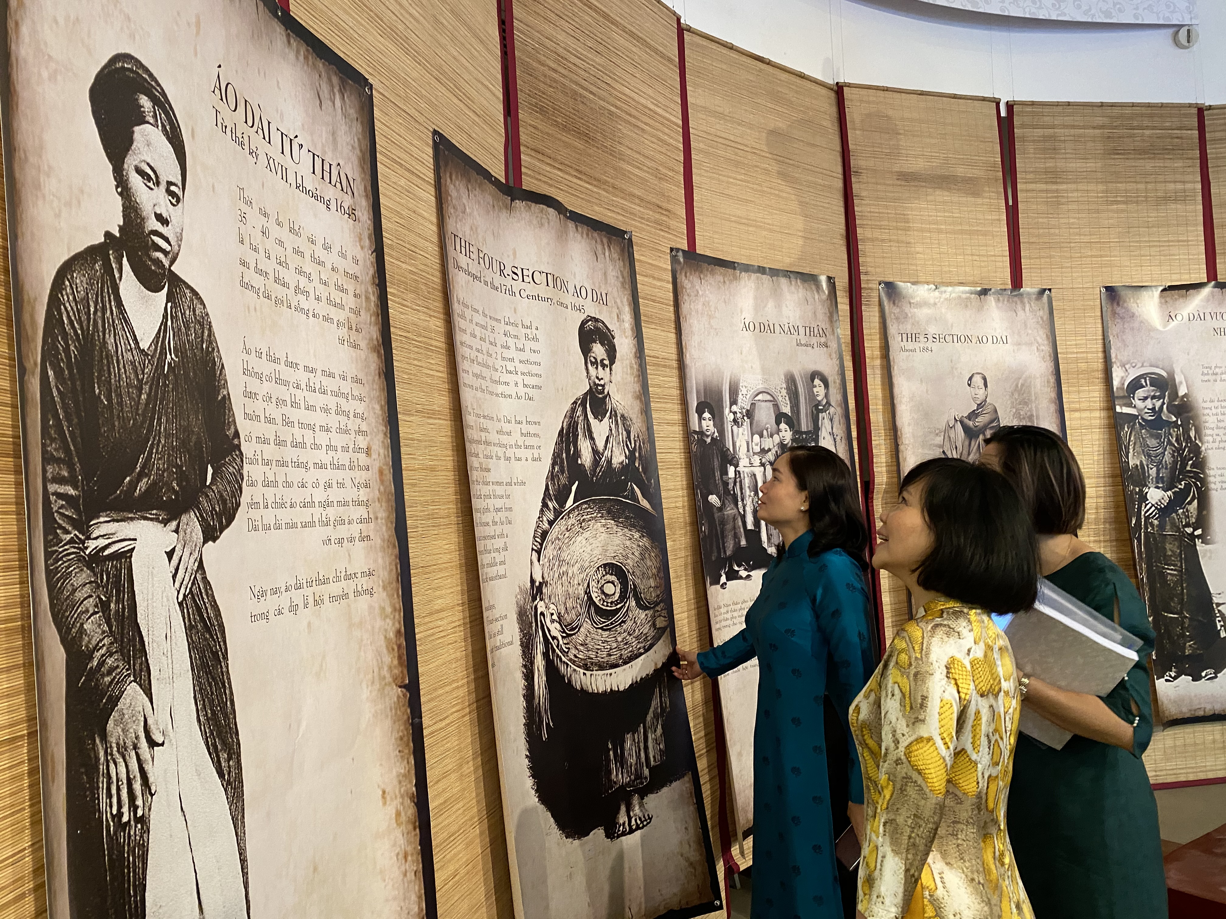 Thứ trưởng Trịnh Thị Thủy tại triển lãm Áo dài Việt Nam xưa và nay