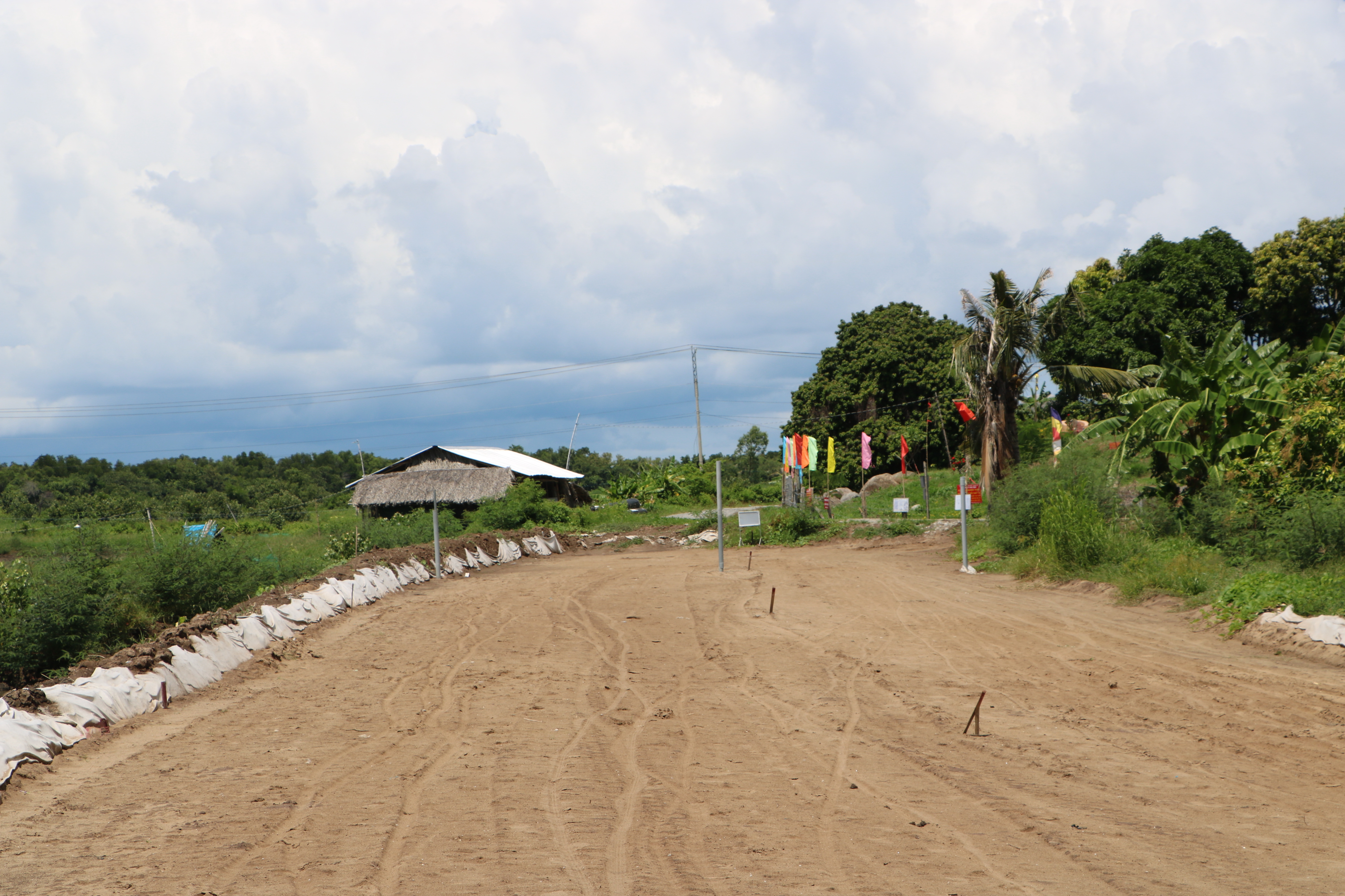 Con đường dự án bẻ cong vào phần đất của miếu bị Ban trị sự và người dân phản ánh nên công trình tạm dừng lại