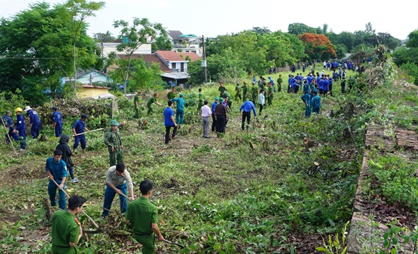 Chưa đến 7h sáng, nhiều cán bộ, chiến sĩ của Bộ Chỉ huy Quân sự tỉnh Thừa Thiên Huế đã có mặt ở các điểm “nóng” về rác thải tại khu vực di tích Thượng Thành (đoạn từ cửa Thượng Tứ đến cửa Đông Ba). Khu vực này, ngoài rác thải sinh hoạt của hàng trăm hộ dân vừa di dời, còn rất nhiều cây xanh, cỏ dại um tùm cần được phát quang, dọn dẹp. Theo thống kê, khu vực di tích Thượng Thành từ cửa Thượng Tứ đến cửa Đông Ba có khoảng 1.490 khối rác thải cần xử lý, với khả năng thu gom rác khoảng 2 khối/người. Ngoài các chiến sĩ của Bộ Chỉ huy Quân sự tỉnh còn có sự “chung tay” của nhiều cán bộ, nhân viên từ nhiều đơn vị khác trên địa bàn, như Công ty CP Môi trường và Công trình đô thị Huế, UBND phường Thuận Thành, Đoàn Thanh niên TP.Huế, Trung tâm Bảo tồn Di tích Cố đô Huế, Công an tỉnh...