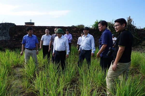 Ông Phan Ngọc Thọ - Chủ tịch UBND tỉnh Thừa Thiên Huế (đội mũ) kiểm tra công tác thu gom rác thải tại di tích Thượng Thành ngày 21.6
