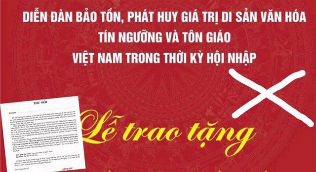 Tuy nhiên, điều đáng nói là trong thư mời có nội dung: Trong khuôn khổ chương trình, BTC sẽ tổ chức tuyên dương trao tặng Bảng vàng “Chùa/Đền/ Điện tiêu biểu toàn quốc; Trụ trì/Thủ nhang/Thanh đồng tiêu biểu toàn quốc; Nhà hoạt động xã hội tiêu biểu toàn quốc” cho các đơn vị, cá nhân tiêu biểu”. Đồng thời kêu gọi: “Để diễn đàn tổ chức thành công tốt đẹp, Trung tâm Bảo tồn Di sản Văn hóa tôn giáo đề nghị các cá nhân tiêu biểu hoạt động trong lĩnh vực tín ngưỡng, Phật giáo và an sinh xã hội trong cả nước tích cực làm hồ sơ đăng ký tham gia”. Nội dung Thư mời cho biết, Diễn đàn dự kiến được tổ chức vào tháng 10.2020 tại Hà Nội.
